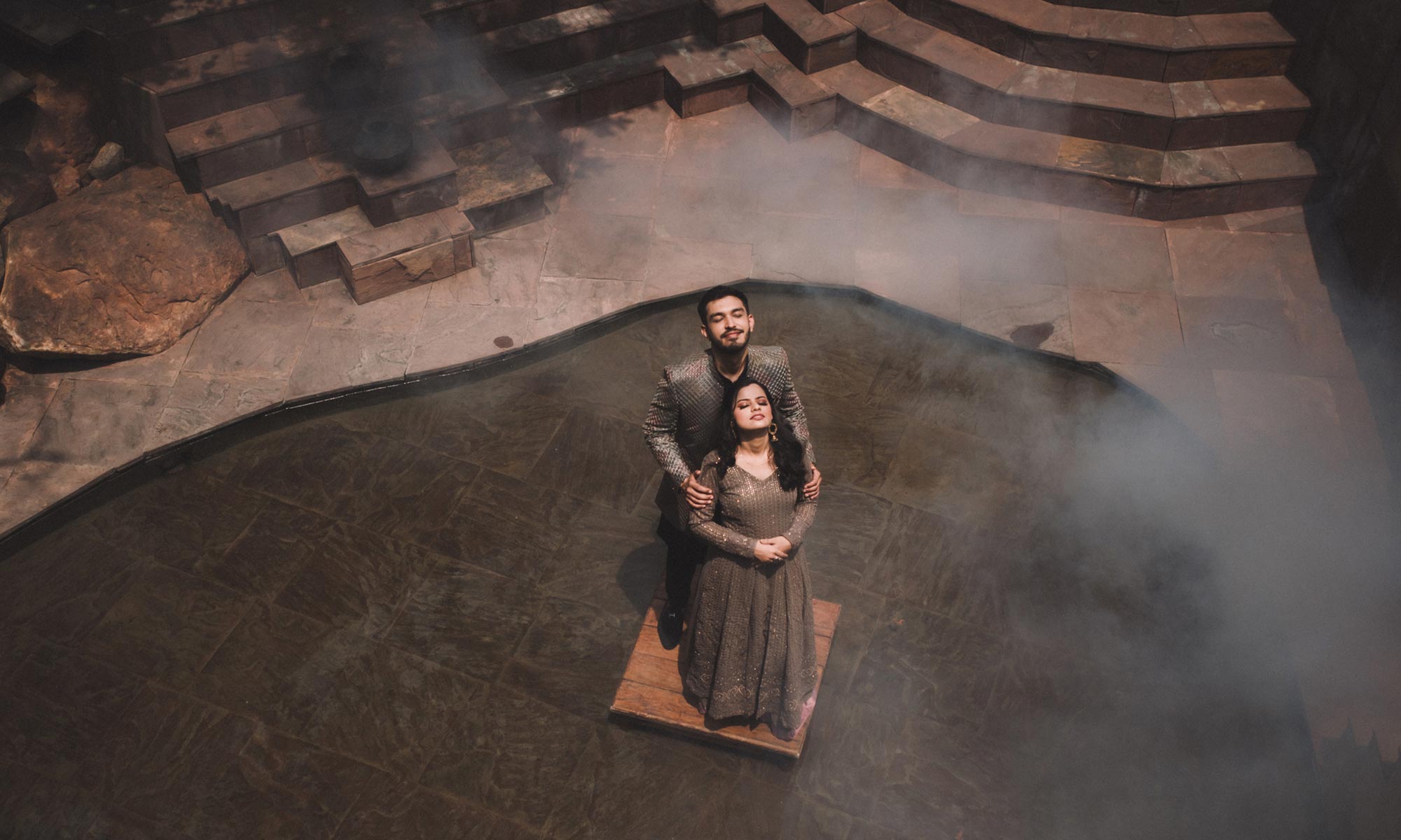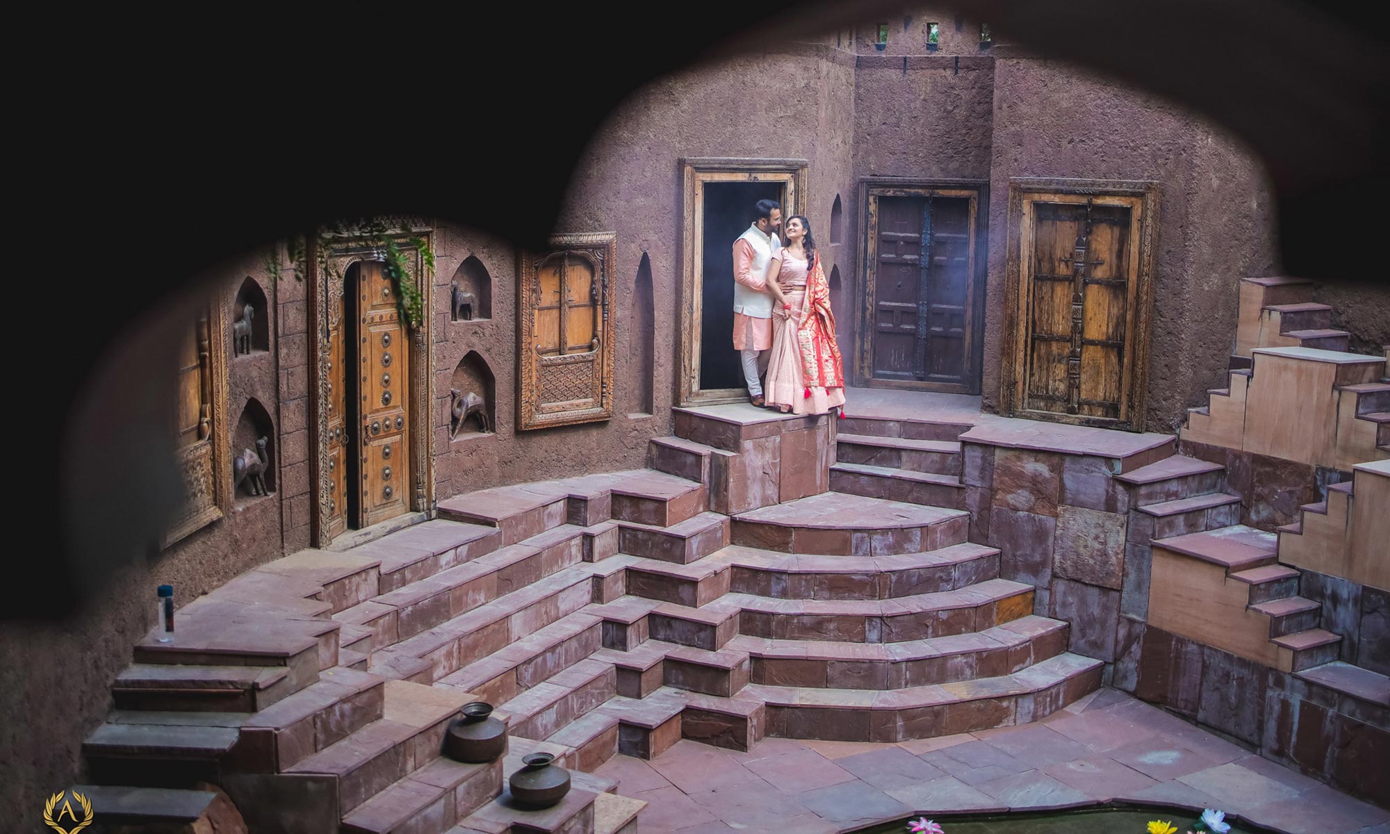 “ANOKHI BAOLI“, 3500 sq. ft. size, with five different kind of steps, a central water body and some amazing antique doors and windows, ideal for videography with a 360 degree view.