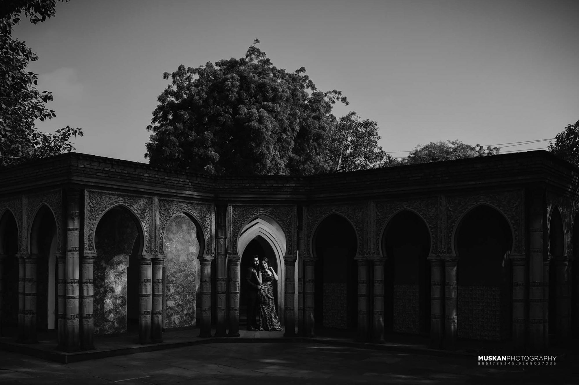 MAAZI PARASTI (PURANI YAADEIN) covering 2,700 sq ft area. A diverse mix of different arches, pillars & corridors gives depth to your camera frame. It has a hexagonal stepwell design in the centre. It will surely transport you to a bygone era.