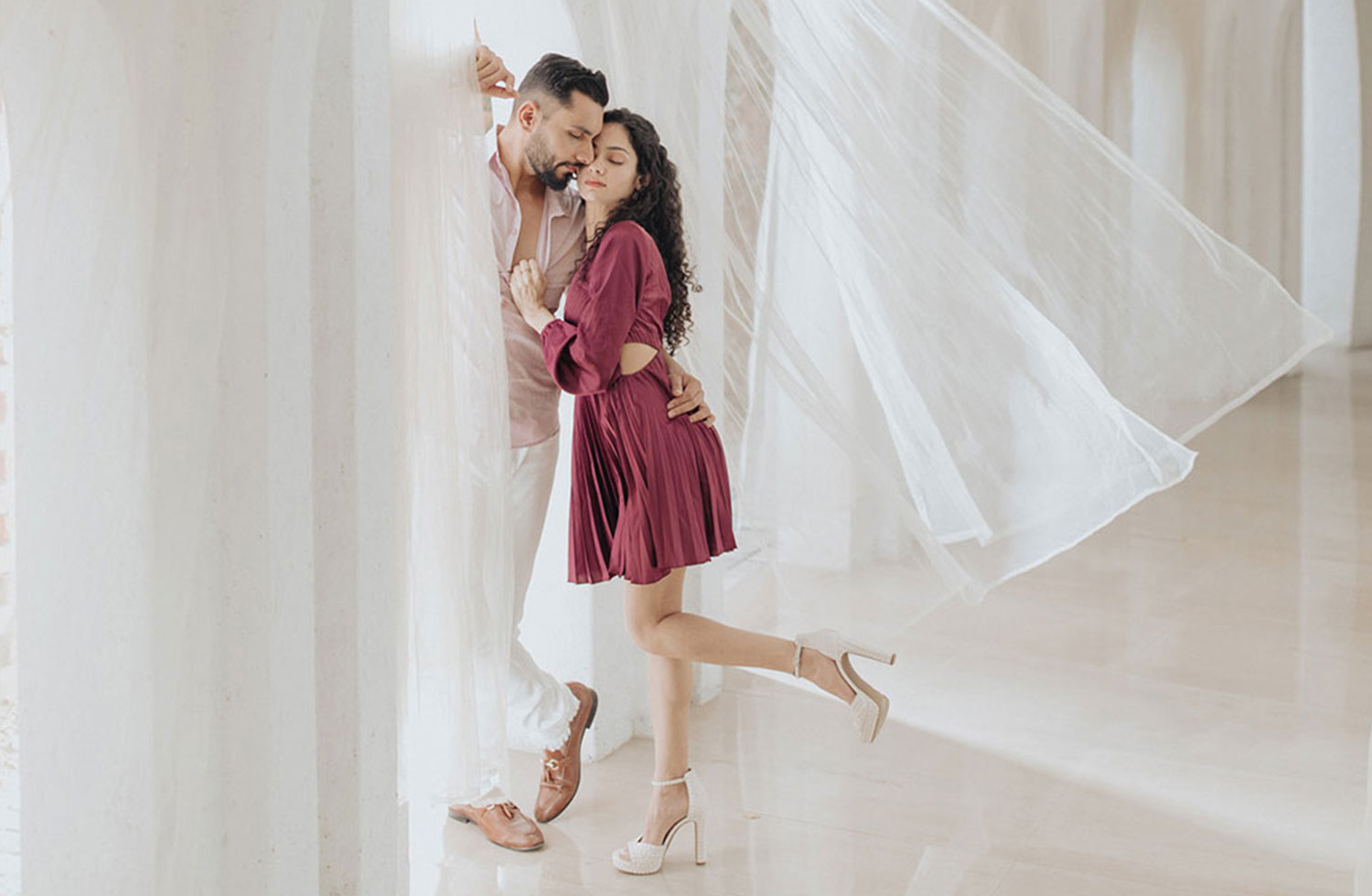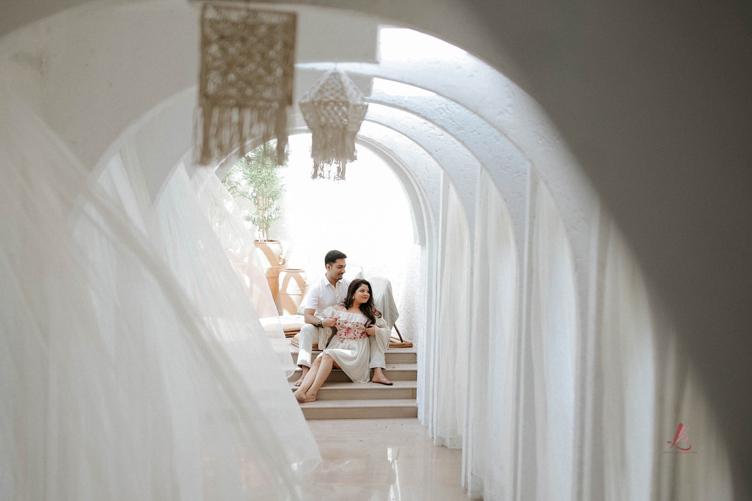 Bali Vibes set has arches, pillars, balcony, a mini oasis and is equipped with enough props, etc. It includes an extended white corridor with flowing curtains catching beautiful light & symmetric shadow patterns. It has a huge area of 3500 sq. ft. with a 360 degree view for seamless photography & videography. With its resort theme, Bali Vibes is perfect for all kinds of fun & romantic shots in casual or formal wear. This SET would be chargeable extra @ Rs.10,000/- and would be subject to availability, else you can pre book the set while confirming your shoot. This SET would be available only with the 8 hour booking.